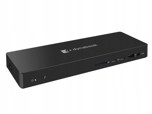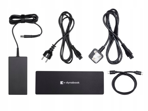 - W zestawie: Stacja dokująca Dynabook Thunderbolt 4 Dock, Przewód Thunderbolt 4 / USB Type-C (80 cm), Zasilacz AC i przewód zasilania (wtyczka EU/UK), Przewodnik Szybki start, Karta gwarancyjna
