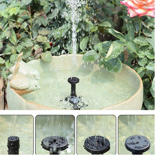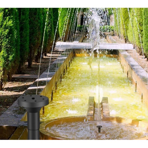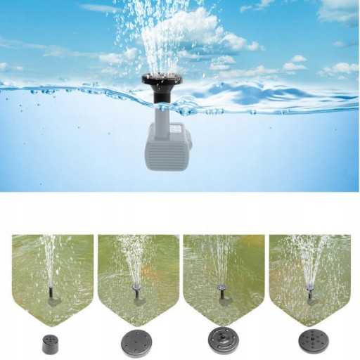 Nasze fontanna solarna posiada 7 różnych nasadki umożliwiające wybór dowolnego strumienia wody, na przykład cienki i wysoki lub gęsty i niski, w zależności od upodobań.