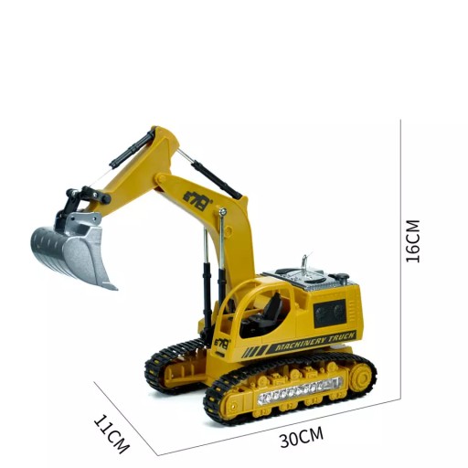 Koparka wzorowana na prawdziwej maszynie. Posiada ruchome ramię z łyżką, realistyczną kabinę z miejscem siedzącym dla operatora, wyposażona w gąsienice, które wjadą na trudniejszy teren. Wyposażona w kolorowe światła LED umieszczone w gąsienicach. Pilot sterowania wprawiający koparkę w ruch. Koparka jest zasilana akumulatorem, który ładujemy za pomocą kabla USD - który jest dołączony do zestawu.