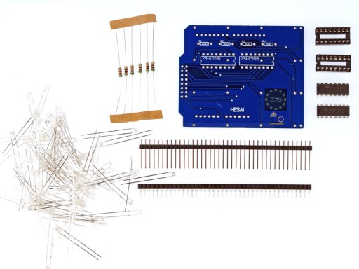 Zestaw do samodzielnego montażu umożliwiający zbudowanie ciekawego efektu wizualnego 3D LightSquared 4x4x4 LED Cube. Jest to efekt zbudowany z 64 diod świecących LED w kształcie prostopadłościanu. Za sterowanie diodami LED odpowiedzialny jest zestaw uruchomieniowy Arduino, który zapala i gasi poszczególne diody LED tworząc interesujące efekty wizualne. Płytka drukowana efektu świetlnego jest zaprojektowana jako nakładka Shield do Arduino (Arduino nie wchodzi w skład zestawu, trzeba wgrać odpowiedni program), Zestaw po poprawnym zmontowaniu ma niepowtarzalny wygląd. Osoba zajmująca się montażem nabywa niezbędne doświadczenie w lutowaniu, oraz analizie układów elektronicznych. Stąd zestaw KIT polecamy dla początkujących elektroników hobbystów.