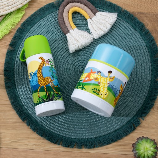 Termos Żyrafy Malawi i Karim 500 ml firmy Ambition Junior stworzony jest dla małej pociechy. Ciepłe, żywe kolory przedstawiają przygody dwóch żyraf. Termos wykonany jest z wysokiej jakości stali nierdzewnej, co zapewnia jego długą żywotność. Świetnie utrzymuje wysoką i niską temperaturę. Termos posiada specjalny zawór bezpieczeństwa w nakrętce, służący do uwolnienia ciśnienia przed jego otwarciem.