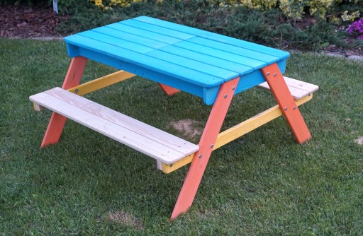 Multi-funkcjonalny stolik piknikowy dla dzieci, który pozwoli na wygodne i przyjemne spędzenie czasu na świeżym powietrzu.