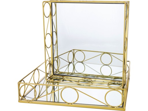 - Kwadratowe tace lustrzane, wykończone złotym obramowaniem