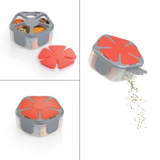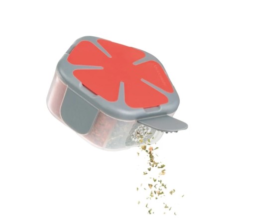 Kompaktowy pojemnik na przyprawy z serii Move idealny do oddzielnego przechowywania i precyzyjnego dozowania do 5 przypraw i oszczędzania miejsca nie tylko w podróży.