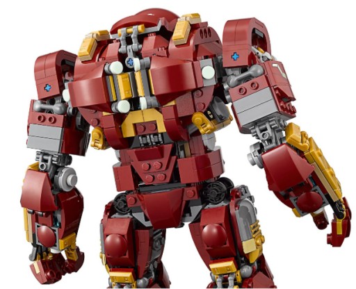 - Hulkbuster ma składaną głowę, obracany tułów, ruchome palce, ramiona, nogi i stopy, świecący klocek LEGO® w klatce piersiowej, dwa wymienne ramiona — jedno zwykłe i drugie z młotem pneumatycznym i funkcją boksowania — oraz 12 elementów świecących w ciemności.