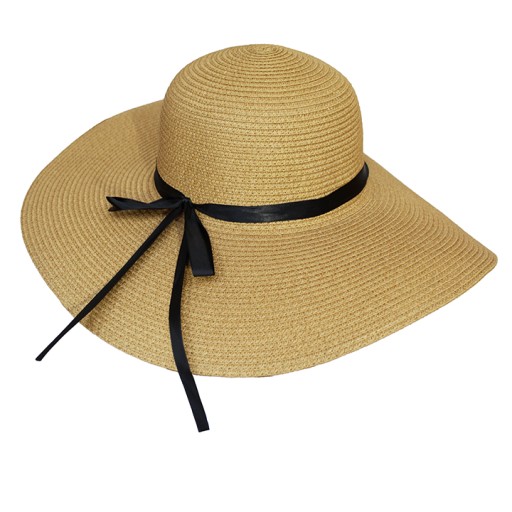 Duży damski kapelusz na lato wykonany z wysokiej jakości materiału z poliestrowym obszyciem.