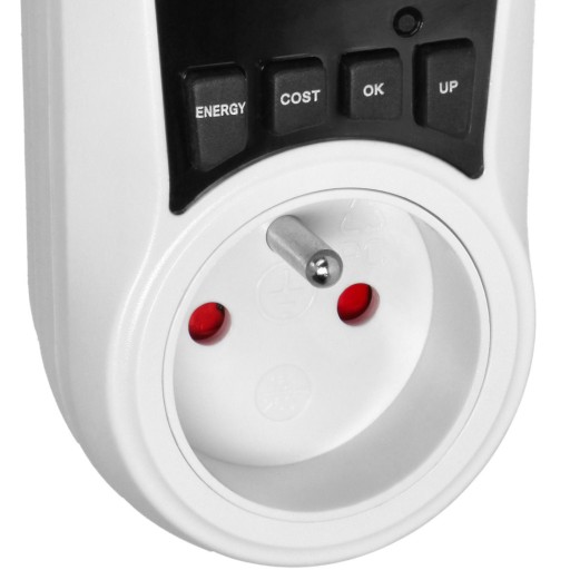 - Miernik mierzy pobieraną energię oraz oblicza jej koszt, podaje zużycie CO2 dla kontrolowanych urządzeń.