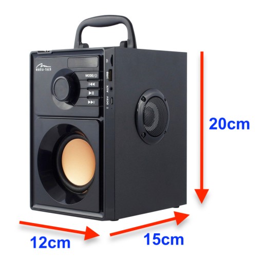 - Dołączone akcesoria: Kabel AUX (jack 3,5mm), kabel USB do ładowania głośnika, pilot zdalnego sterowania