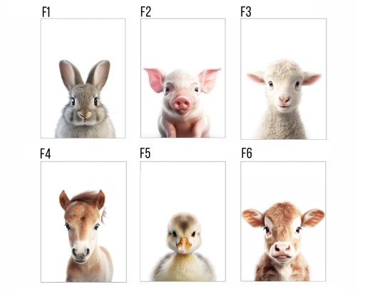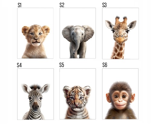 Domyślnie plakaty są wysyłane we wzorach jak w miniaturce - żyrafa, lew, słoń.