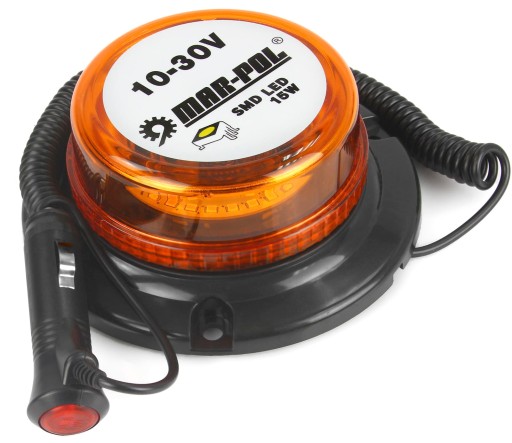 Światło ostrzegawcze w kolorze pomarańczowym. Kogut posiada zasilanie bezpośrednie do zapalniczki oraz przycisk on/off, który umożliwia w łatwy i prosty sposób uruchomić i wyłączyć urządzenie.