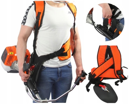 Solidne i komfortowe szelki dwuramienne ze stabilizacją wokół brzucha. Znacząco poprawiają komfort nawet podczas długiej pracy przy koszeniu. Zapewniają pełną swobodę ruchów oraz ZMNIEJSZAJĄ zmęczenie pleców.