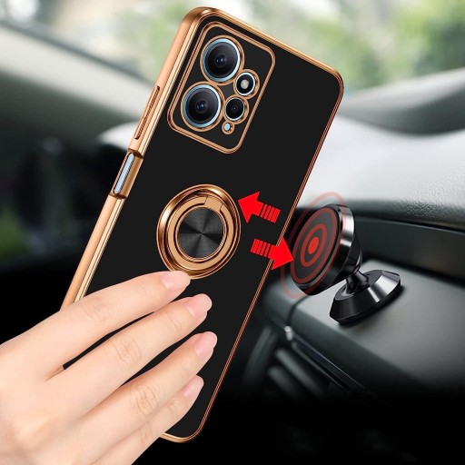 Silikonowe etui z złotą ramką i ringiem na palec (który trzyma się uchwytów magnetycznych) oraz ochroną aparatów