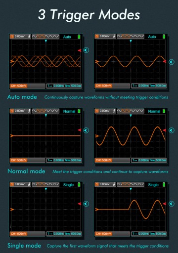 ✅ 3 tryby wyzwalania: tryb automatyczny, tryb normalny, tryb pojedynczy