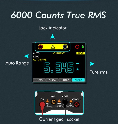 ✅ 6000 zliczeń multimetru o dużej pojemności RMS