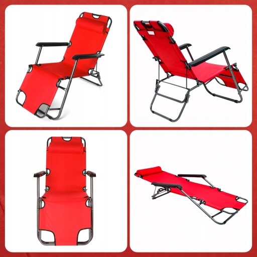 FOTEL OGRODOWY LEŻAK PLAŻOWY TURYSTYCZNY PODUSZKA CZERWONY