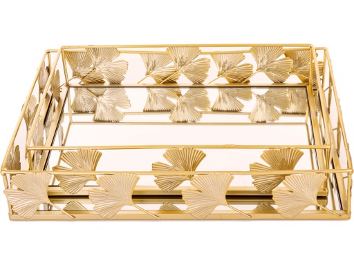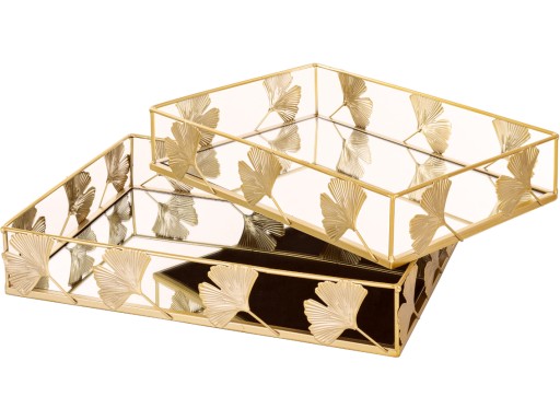 - Prostokątne tace lustrzane, wykończone złotym obramowaniem