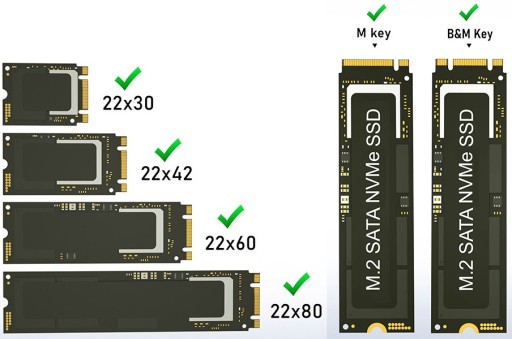 Kompatybilny z dyskami SSD M.2 NVMe/SATA M, B i M Key.