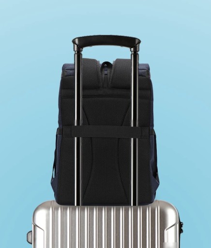 ✔️ Tył plecaka posiada specjalny pas umożliwiający przymocowanie go do np. walizki podróżnej