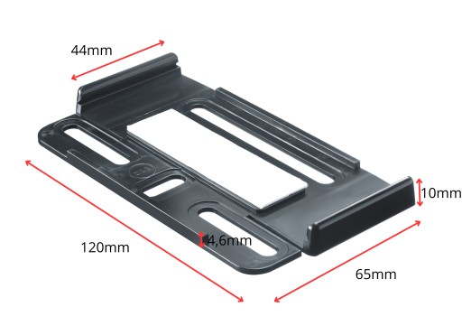 - W części niewidocznej uchwyt został poszerzony do 65mm i na obu końcach znajdują się wypustki stabilizujące tablicę