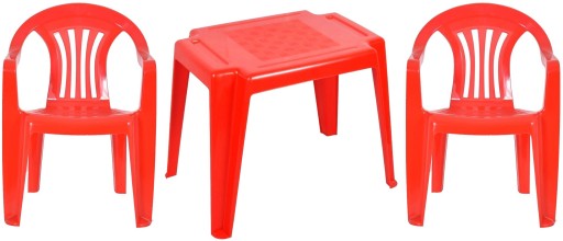 PLASTIKOWY MOCNY ZESTAW MEBLI DLA DZIECI W KOLORZE CZERWONYM