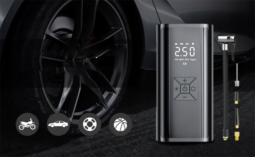 - Można wstępnie ustawić ciśnienie w oponach i czas pompowania, a zatrzyma się automatycznie po zakończeniu pompowania.