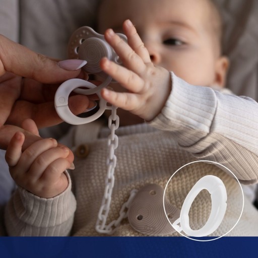 - nie należy wieszać smoczka dziecku na szyi, bowiem grozi to uduszeniem, warto skorzystać z łańcuszka lub zawieszki ze specjalnym przeznaczeniem do uspokajacza;