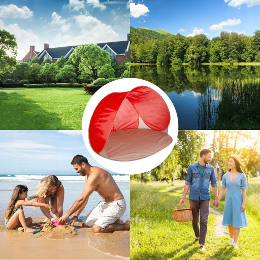 Namiot plażowy samorozkładający parawan na plaże DUŻY 180x125cm czerwony. Doskonały namiot na wycieczki, wypady na plaże, za miasto a nawet na ryby. Do jego rozłożenia potrzeba nie więcej niż 10 sekund. Namiot został wykonany z wodoodpornego poliestru. W zestawie pokrowiec, który sprawia, że jego transport i przechowywanie jest bardzo łatwe. W zestawie również są śledzie, dzięki nimi przymocujesz namiot do podłoża!