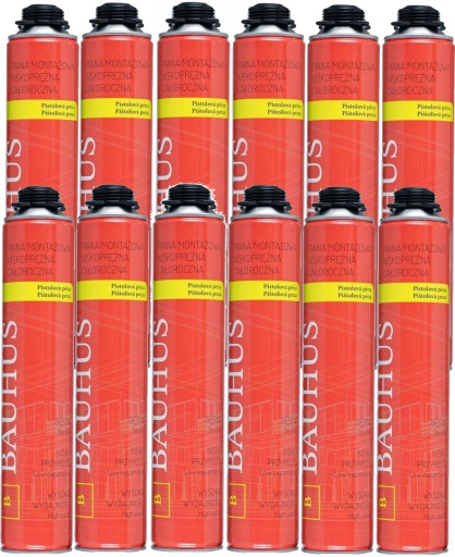 • Pianka poliuretanowa Bauhus do zastosowań montażowo-uszczelniających całorocznie (możliwość używania od -10 do +30 stopni Celsjusza)