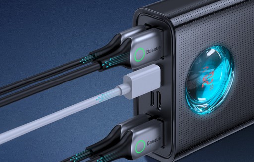 Powerbank Baseus Amblight pozwala ładować nawet 5 urządzeń jednocześnie – nie czekaj, aż jeden sprzęt będzie gotowy do pracy, zanim podłączysz kolejny! Produkt obsługuje też różne standardy szybkiego ładowania, w tym PD3.0, QC3.0, FCP i SCP, a jego moc sięga 65 W. Co to oznacza? Przykładowo, aby naładować Samsunga S20 Ultra, wystarczy około 60 minut!