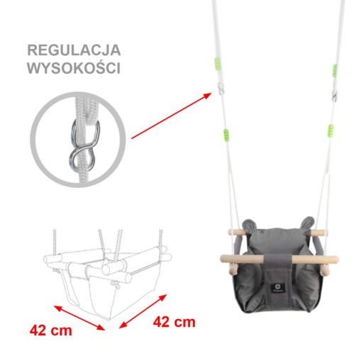 ☑️ Wiek: Huśtawka nadaje się dla niemowląt i małych dzieci w wieku od około 6 miesięcy do 3 lat (od chwili, gdy dziecko potrafi samodzielnie siedzieć do wagi 50 kg). UWAGA: Nie nadaje się dla małych niemowląt ani tych, które nie potrafią samodzielnie siedzieć. Huśtawka jest wyposażona w regulowane linki dzięki czemu będzie towarzyszyć Twojemu dziecku przez całe dzieciństwo.