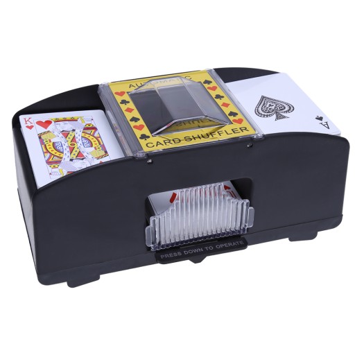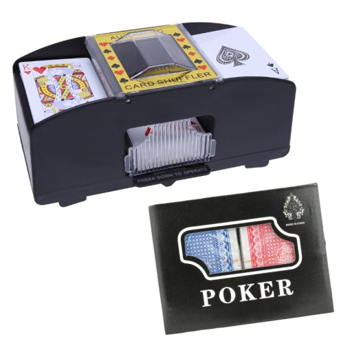 - Zapewnia szybkie tasowanie 2 talii kart lub jednej talii rozdzielonej na pół