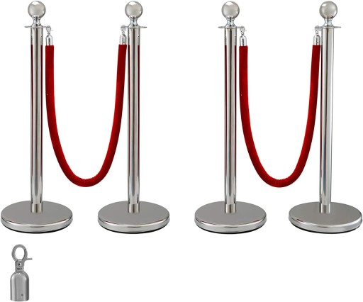 НАБОР ИЗ 4 СТОЛБОВ БАРЬЕРА + 2 СЕРЕБРЯНЫХ ВЕРЕВОК