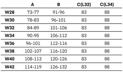 C: Wewnętrzna długość nogawki - mierzymy nogę od kroku do kostki.