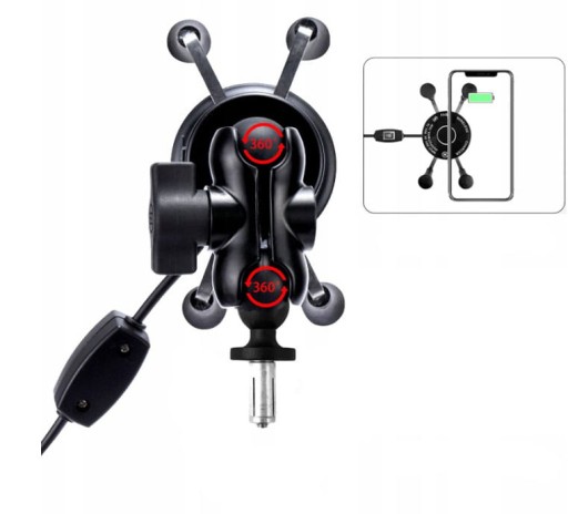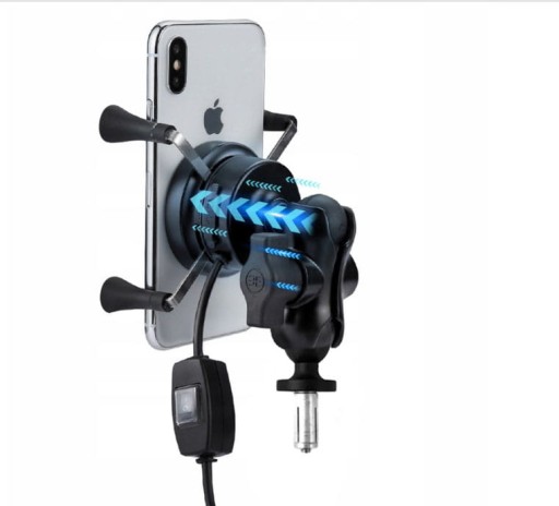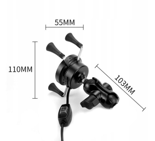 Motocyklowy uchwyt na telefon z ładowaniem indukcyjnym + USB. Funkcja szybkiego ładowania ze zmiennym napięciem qc 3.0 Stabilność i wstrząsoodporność. Montaż na główkę ramy. Uchwyt przeznaczony do telefonów (3,5 do 6,9 cali) i każdego innego urządzenia ( o szerokości od 35 do 85mm)