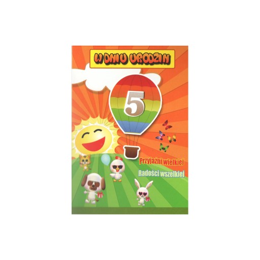Dziecięcy karnet z życzeniami na urodziny - 5 lat