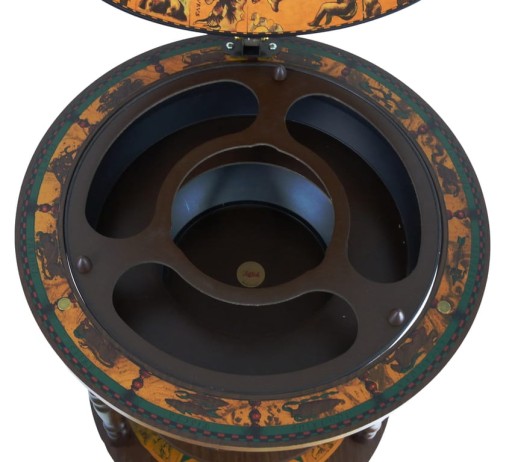 Nasz najpopularniejszy globus Giunone może pomieścić do 9 szklanek i 3-4 butelki w zabytkowej południowej kuli z XVI wieku. Nadaje się zarówno do dużych, jak i małych pomieszczeń, ta drobna szczegółowa kula ziemska nada w twoim domu klasyczny akcent. Nogi z litego drewna liściastego w kolorze kasztanowca i pięknie ilustrowana dolna półka tworzą podstawę. Kula globu w pełni obraca się wokół swojego południka, gdy jest otwarta lub zamknięta. Możesz go łatwo przesuwać dzięki kółkom.