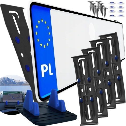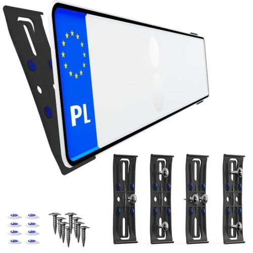 - w zestawie: 4 uchwyty do tablicy rejestracyjnej, 8 śruby montażowe, 16 naklejek antypoślizgowych, instrukcja montażu