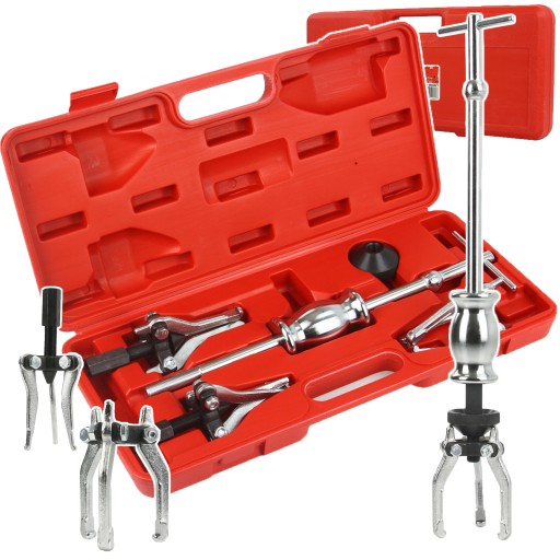 - Zestaw przeznaczony jest do pilotujących łożysk kulkowych, igiełkowych, oraz innych prac wymagających wewnętrznego ściągacza.