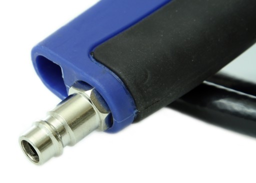 Wężyk o długości 100cm został wyposażony w standardową końcówkę do większości wentylów. Dzięki standardowej końcówce nasz pistolet staje się uniwersalny i wszechstronny. Wystarczy nacisnąć za spust końcówki i odpowiednio nałożyć na wentyl. Możliwa praca jednoosobowa.