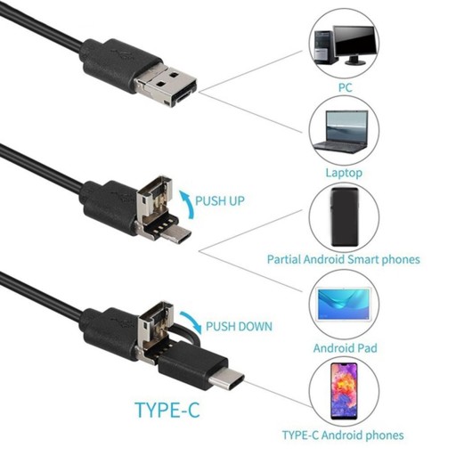 Projekt interfejsu 3 w 1: ta kamera endoskopowa przyjmuje interfejs USB / Micro USB / Type C z szeroką kompatybilnością i range.for zastosowań. dla smartfona z systemem Android/dla komputera z systemem Windows/dla tych 3 interfejsów.