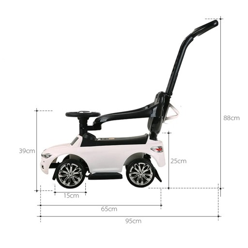 - Możliwość pchania jeździka z tyłu trzymając się za oparcie