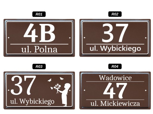 - Kolor tabliczki: BRĄZ (RAL 8017)