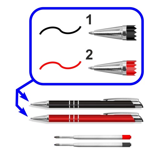 Zestaw składa się z dwóch długopisów w kolorach czarny i czerwony.