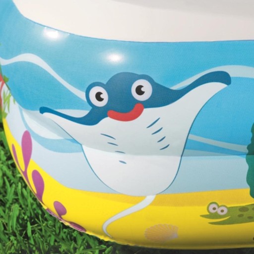 Atutem basenu jest to iż posiada odpinany daszek, który zapewni ochronę przed nadmiarem słońca. Grafika z zwierzątkami morskimi zachęci każdego maluszka do skorzystania z basenu.