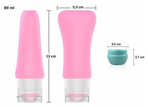 Buteleczki znakomicie sprawdzą się jako pojemnik na szampon,mydło, balsam oraz żele zajmując przy tym niezmiernie małą przestrzeń w twojej kosmetyczce. W zamykane pojemniczki włożysz kremy, maści wszystko co potrzebujesz. Pojemniki mają zatyczki zabezpieczające przed wyleniem się zawartości. W zestawie rówież dwia praktyczne ochraniacze na szczoteczki