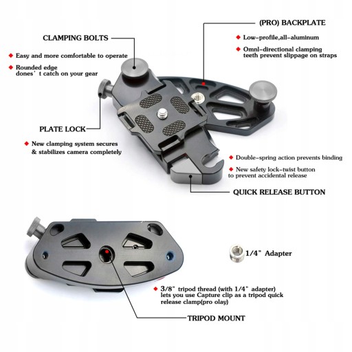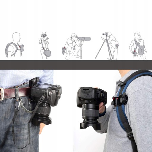 - Przeznaczenie do różnych aparatów 20 kg przydatność można zawiesić na plecakach, torbach szkolnych, paskach na ramię, mankietach i głowicach statywów, blokada wtórnego zabezpieczenia zapobiega upadkowi aparatu podczas treningu, nadaje się do potężnych lustrzanek cyfrowych lub kompaktowych aparatów cyfrowych