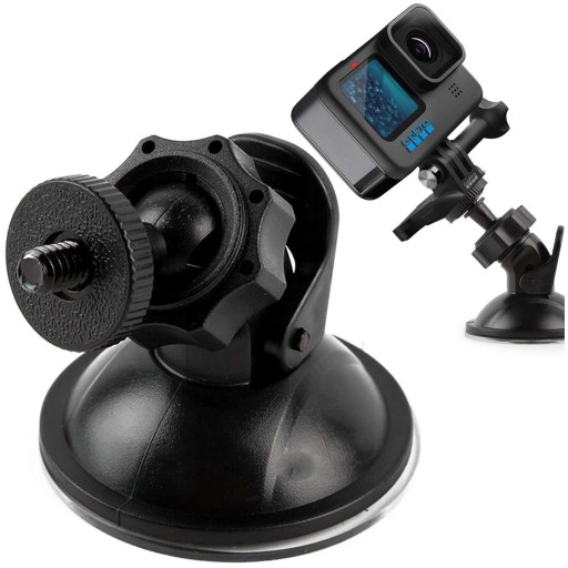 ▶️ Uchwyt samochodowy Alogy Car uniwersalny z montażem 1/4 dla kamer sportowych GoPro na szybę, kokpit Czarny