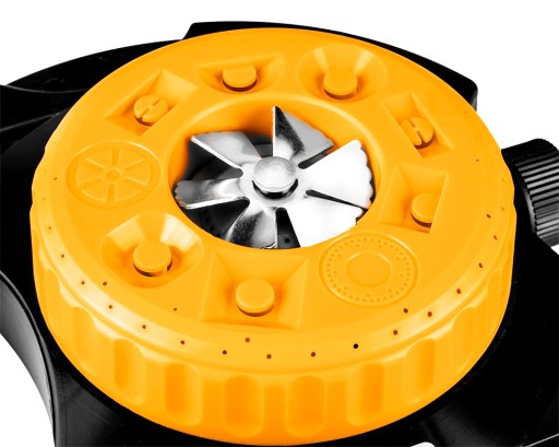 - Zraszacz w kształcie dysku, pozwalający utrzymać trawnik, ogród lub uprawy w perfekcyjnej kondycji.
