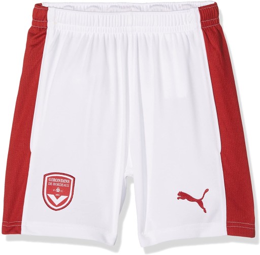 Replika spodenek Girondins Bordeaux dla dzieci. Oto młodzieżowa wersja spodenek piłkarskich Girondins Bordeaux na sezon 2017/18. Wysoce funkcjonalny materiał odprowadza pot na zewnątrz, zapewniając wygodne dopasowanie podczas wysiłku. Przygotuj się na wyschnięcie z oficjalnym logo FCGB tkanym dryCELL. Oddychające elementy na klinie i taśmie PUMA wykonane z siateczki.Elastyczny ściągacz w pasie dla idealnego dopasowania.Formalne dopasowanie 100% poliester