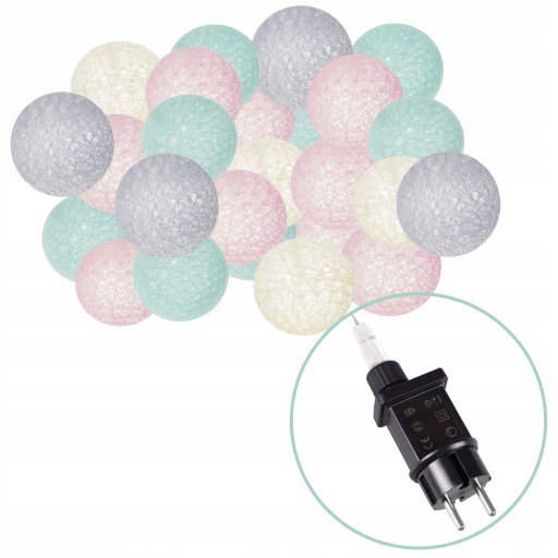 GIRLAND ХЛОПКОВЫЕ ШАРИКИ 20 СВЕТОДИОДНЫХ ЛАМП С ПИТАНИЕМ